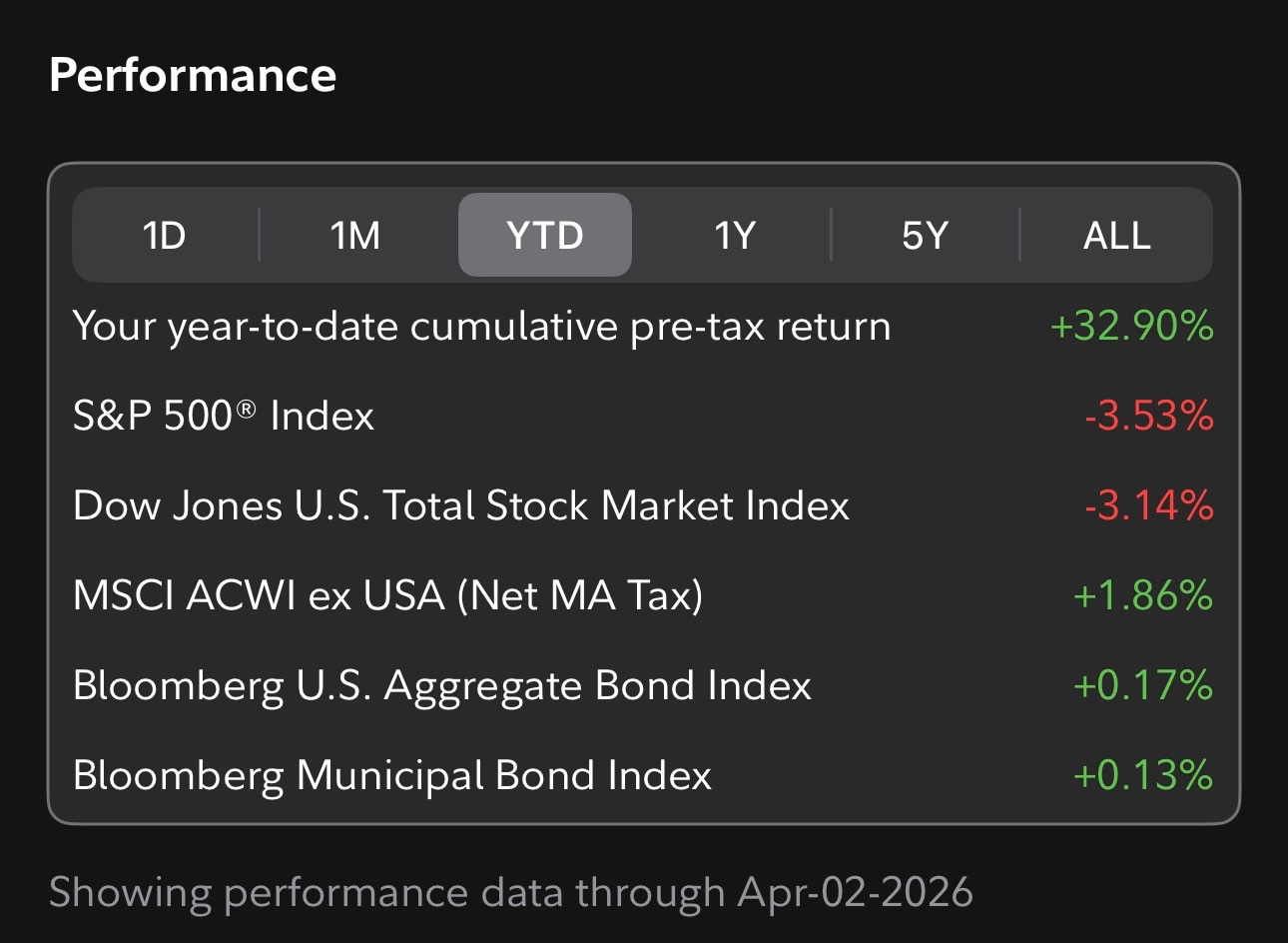 Something shifted this week. Not in the headlines (those are still disgustingly chaotic). But underneath. The portfolio got restructured in a way I’ve been wanting to do for weeks, the biotech basket is finally deployed, and the numbers through April 2nd speak for themselves. +32.9% YTD against a bleeding red S&P. Trailing twelve months: +117.3%.